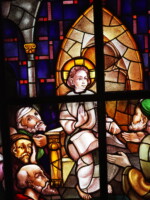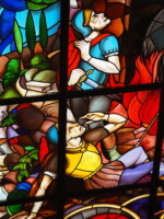 Alle ramen hebben betrekking op het leven van Maria. Aan de rechterkant van het gebouw verwijzen de voorstellingen naar positieve gebeurtenissen in het leven van Maria; om die reden zijn de ramen aan die kant ook kleurrijker dus minder somber. De ramen aan de andere kant zijn enigszins triester van sfeer, alhoewel de grote kleuroppervlakken veel vergoeden.